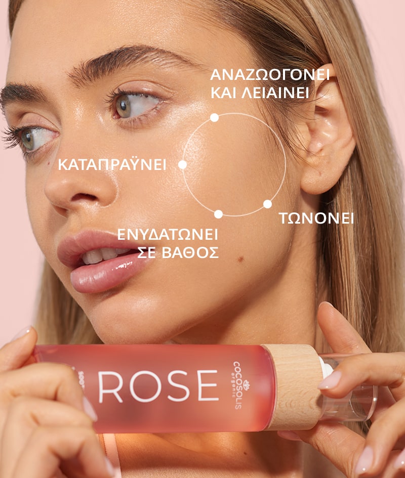 √ Συνδυασμός από νερά βουλγαρικού Ρόδου Δαμασκού, μελισσόχορτου, καρύδας και κάκτου φραγκόσυκου