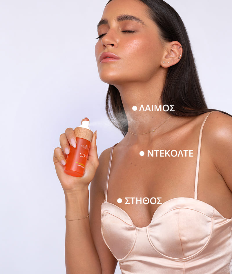 Ορός-σπρέι lifting για λαιμό, ντεκολτέ και στήθος. Με 9 ισχυρά συστατικά με κλινικά αποδεδειγμένη αντιγηραντική, συσφικτική και ενεργοποιητική δράση κολλαγόνου – για ορατά αποτελέσματα σε ένα μήνα.